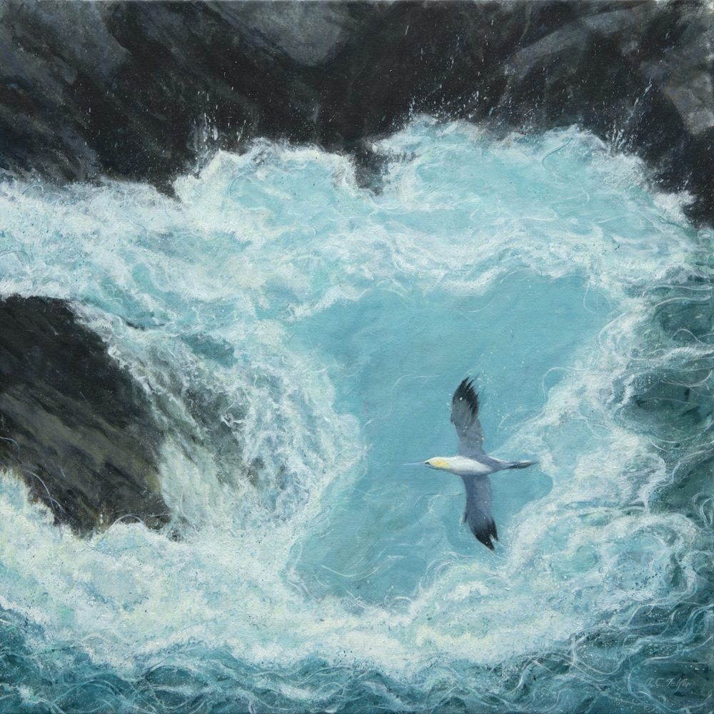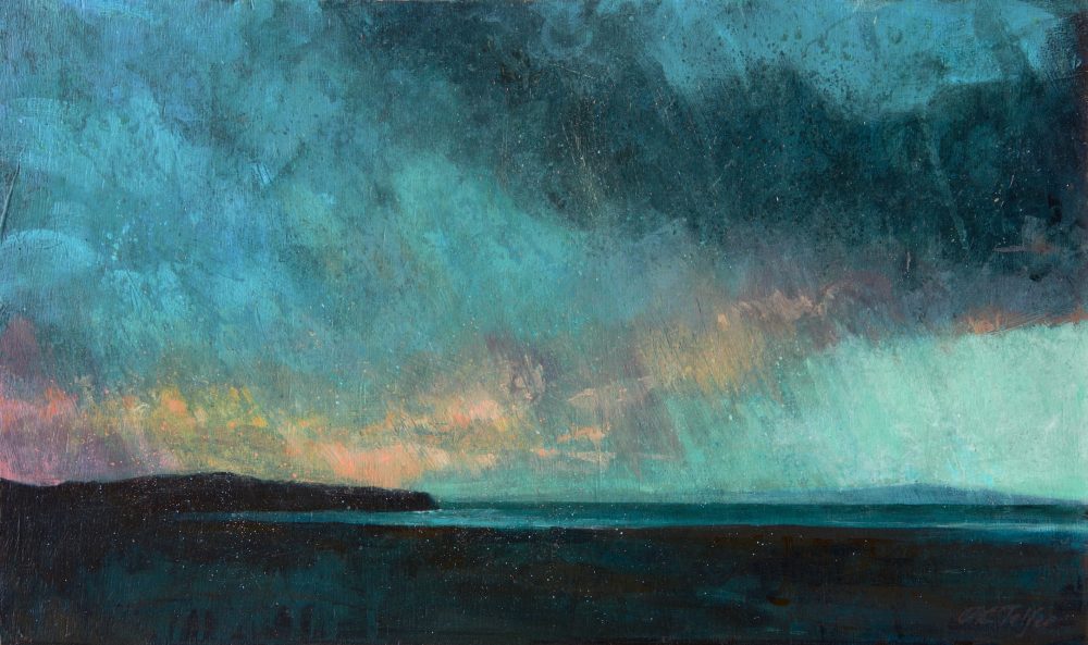A.C Telfer’s paintings are often described as ‘evocative’ and ‘atmospheric’ . Her paintings describe memorable moments she has experienced in the landscape. They are figurative but not literal, using colour and texture to convey mood, movement and a sense of place.