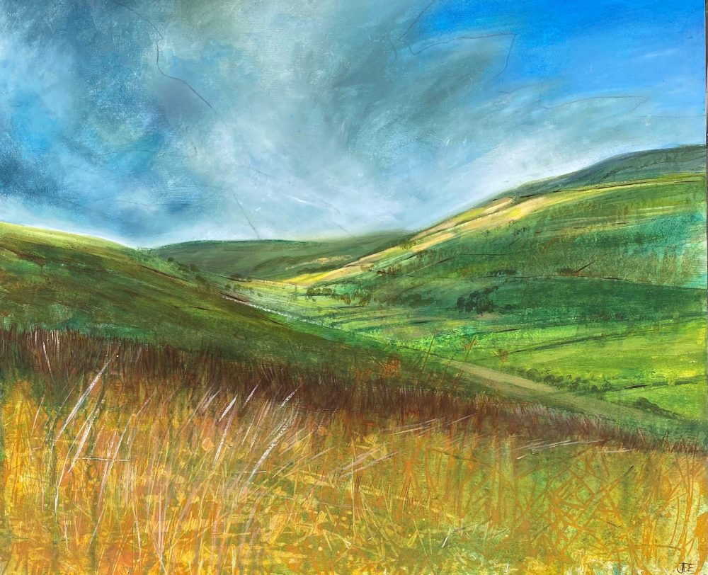 Working in both oils and acrylics, Julie responds to the post-industrial landscape of The Dales in her paintings; their beauty and the scars left by human interaction with the land.
