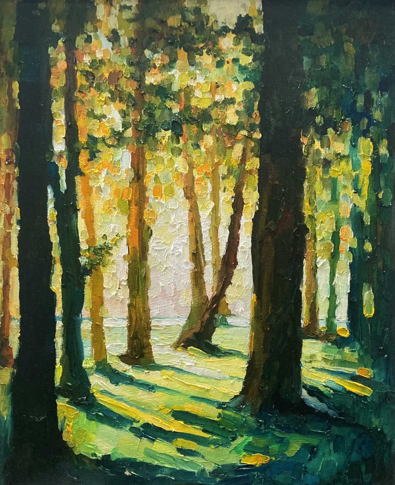Lucie Wake’s oil paintings capture the serene beauty of nature, focusing on the tranquil interplay of light and shadow. Influenced by her love of open-water swimming, her work reflects the soul’s connection to the restorative power of the natural world, evoking a sense of calm.