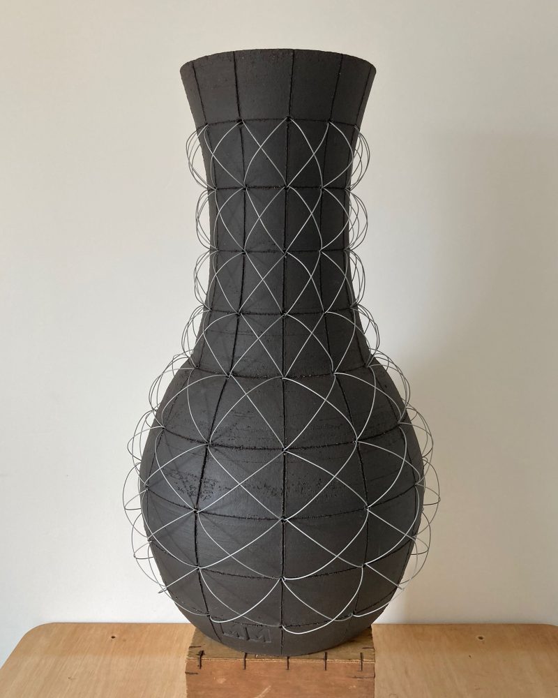 Matt’s work is inspired by a range of natural, industrial, architectural and geometric forms. Exploring scale, texture, and material qualities, he makes large stoneware pots, and vessels constructed by stitching or weaving tiles together with rope or wire.
