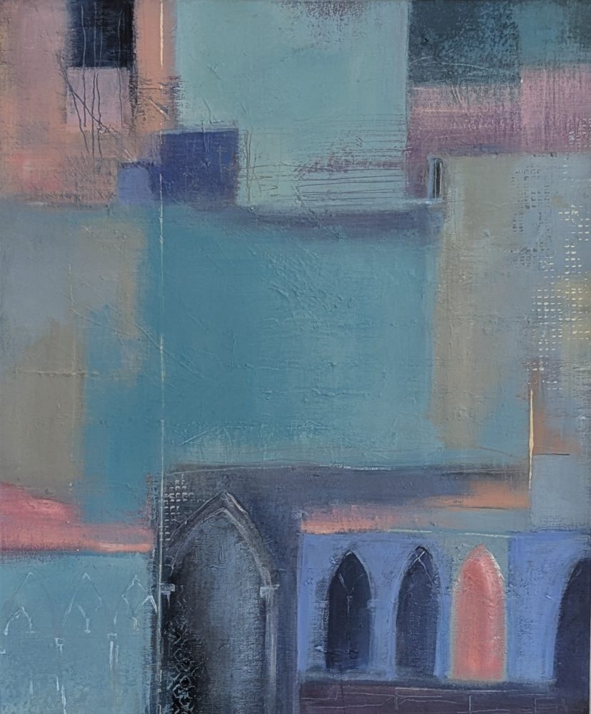 Rachel’s layered abstract work is based on projects and walking journeys, rooted in the North Yorkshire landscape. She uses Oil, Acrylics and Textiles to suggest a contemporary impression of former industries, abbeys and pathways. Their ruins are suggested by contrasting negative space with areas of detail.
